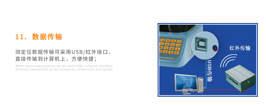 測定儀數(shù)據(jù)傳輸可采用USB/紅外接口,直接傳輸?shù)接嬎銠C上,方便快捷;
