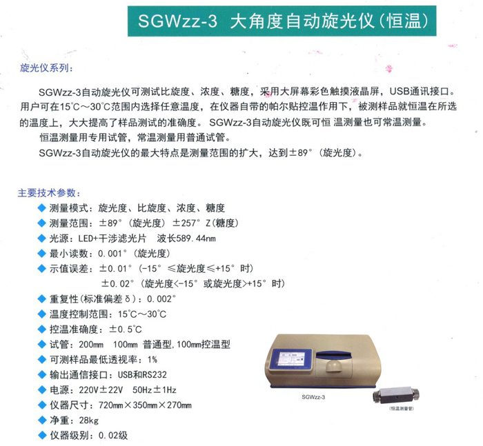 大角度自動(dòng)旋光儀(恒溫) SGWzz-3