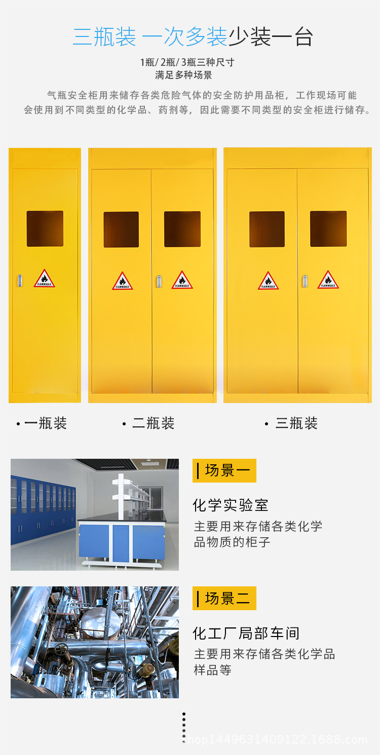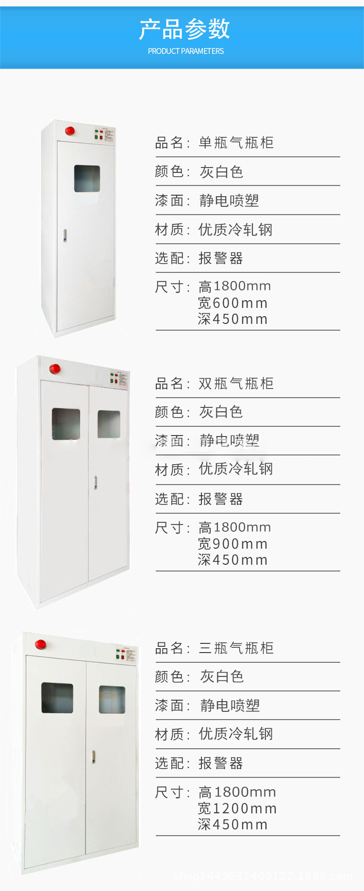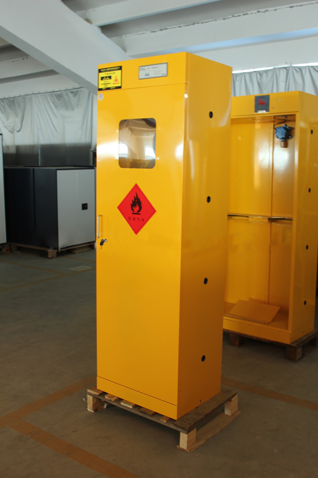 u 全自動報警氣瓶柜:該報警系統技術性強,靈敏度高,一旦有氣體泄露,該報警系統自動報警并自動排風,把危險氣體排出室外。柜體內部結構可保證氣瓶的安置和擺放。適合各種氣體氣瓶的存放。牢固可靠,防腐阻燃。